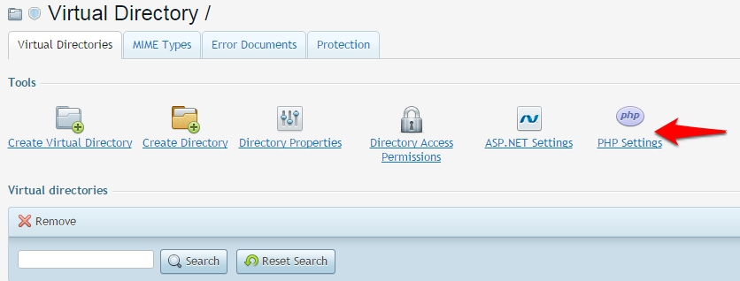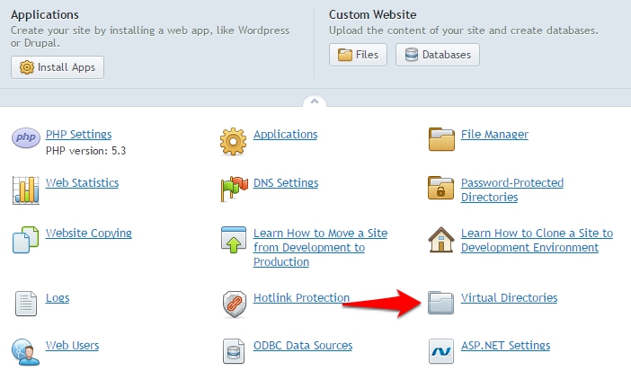 Click on the Virtual Directories link.