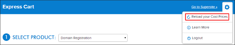 The Express Cart can be reached by clicking on the Buy button in the Reseller Control Panel on the top right. Alternatively, all Buy links within the Products menu default to the Express Cart for Resellers.
