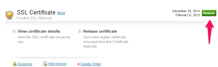 You can Renew, Delete or Suspend your SSL Certificate order by following the steps below.