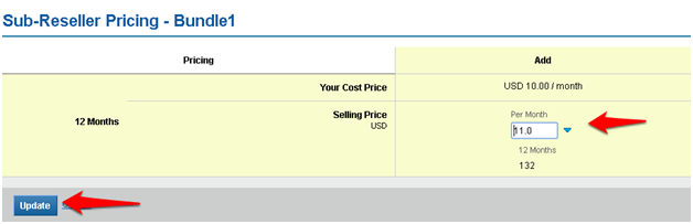 • Add the per month Selling Price and click on the Update button to save your changes.