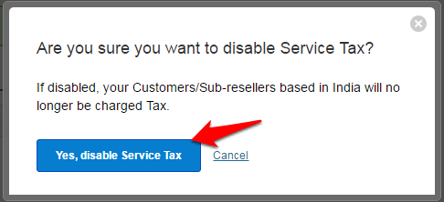 • Click on the Yes, disable Service Tax button to confirm.