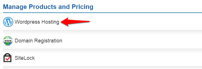 Step 2: Navigate to the Wordpress Hosting Products and Pricing page.