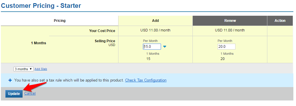 Add the per month Selling Price and click on the Update button to save your changes.