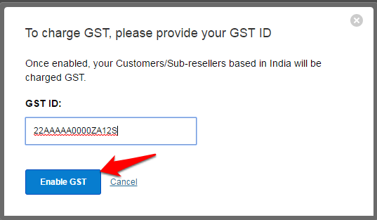 Enter your GST ID in the provided field and click on Enable GST.
