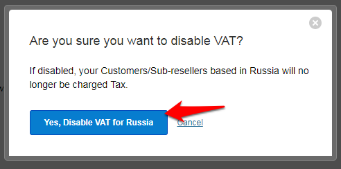 Click on the Yes, Disable VAT for Russia button to confirm.